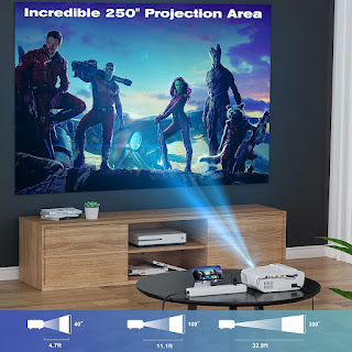 • Pantalla gigante y función de zoom: nuestro proyector portátil ofrece tamaños de visualización entre 50 y 250 pulgadas a distancias de proyección entre 5 pies y 20 pies. Además, el proyector ofrece una restauración con un solo clic y una función de zoom del -25%, lo que hace que sea conveniente ajustar el tamaño de la pantalla. Disfruta de las películas favoritas con tu familia en tu patio trasero. Se recomienda usarlo por la noche.
